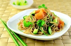 サーモンときゅうりを使用したそばサラダ(はくばくオーストラリア提供)