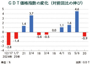 ニュージーランド(NZ)の乳業最大手フォンテラなどが運営する乳製品のオンライン販売システム「グローバル・デアリ―・トレード(GDT)」で20日に行われた競売で、GDT価格指標は前回から0.9%下落した。下落は3月上旬以降 […]