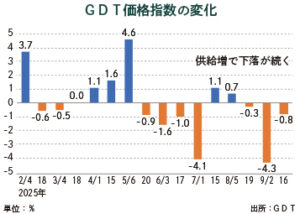 乳製品価格GDT指数、3回連続で下落
