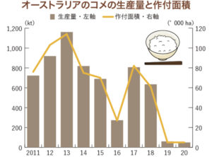 コメの収穫期が近づくオーストラリアで、今シーズンの生産量は、史上2番目に少なかった昨年をさらに下回り、わずか5万4,000トンと壊滅的な少なさに落ち込む見通しだ。