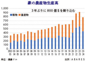 豪の農産物生産高、6年ぶり減少 乾燥と価格下落で