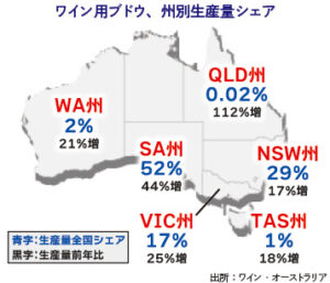 オーストラリアからの2020/21年度(20年7月~21年6月)のワイン輸出額が前年度比10%減となる25億5,600万豪ドル(1豪ドル=約81円)に落ち込んだことが、連邦政府機関ワイン・オーストラリアの報告書で明らかになった。