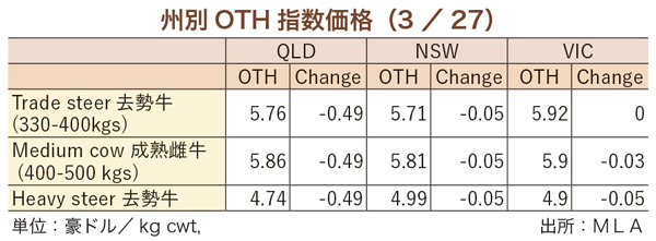 不確実性高まり牛の販売頭数2倍に 2020年4月3日 最終更新日時 : 2022年4月28日 ウェルス編集部 オーストラリア食肉家畜生産者事業団(MLA)によると、3月第3週の全国の売りに出された牛の頭数(yardings)は9万2,450頭で、前週の約2倍近くの数となった。 コンテンツの残りを閲覧するにはログインが必要です。 お願い Log In. あなたは会員ですか ? 会員についてFacebookXBluesky