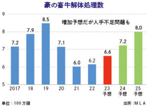 豪の牛群数、14年以降の最高に 2023年2月3日 最終更新日時 : 2023年2月3日 ウェルス編集部 オーストラリアの2023年の牛群数は2,880万頭に上り、14年以降の最高水準に達するとの見込みをオーストラリア食肉家畜生産者事業団(MLA)が発表した。前年から110万頭(4.5%)増加し、25年には2,960万頭と1970年代以降の最高水準の頭数になるという。昨年の雨の多い気候により、今後2年間は天候に関係なく若齢牛や解体重量の牛の供給は安定するとみられている。 コンテンツの残りを閲覧するにはログインが必要です。 お願い Log In. あなたは会員ですか ? 会員についてFacebookXBluesky