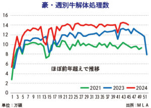 豪10月牛肉輸出、米国主導で過去最高に 2024年11月14日 最終更新日時 : 2024年11月14日 ウェルス編集部 オーストラリアの10月の牛肉輸出量が13万48トンで、今年7月に記録した過去最高の単月輸出量を約50トン上回った。今年の年初来累計は109万7,000トンで、前年同期の88万トンを24.4%上回っている。 コンテンツの残りを閲覧するにはログインが必要です。 お願い Log In. あなたは会員ですか ? 会員についてFacebookXBluesky