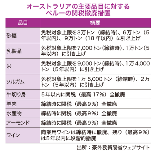 南米農産物市場を開拓せよ 豪ペルーFTA締結 2017年11月17日 最終更新日時 : 2022年4月28日 ウェルス編集部 オーストラリアとペルーは10日、ベトナムで開催されていたアジア太平洋経済協力会議(APEC)で、ペルー・オーストラリア自由貿易協定(PAFTA)を締結した。 コンテンツの残りを閲覧するにはログインが必要です。 お願い Log In. あなたは会員ですか ? 会員についてFacebookXBluesky