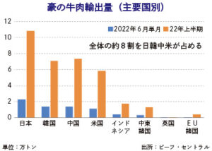 畜牛価格EYCI、下落止まらず大台割れ 2022年7月15日 最終更新日時 : 2022年7月15日 ウェルス編集部 高値が継続していたオーストラリアの畜牛価格が、10カ月ぶりに大台を割った。ベンチマークとなる東部地区若齢牛指標価格(EYCI)は1カ月にわたり下落を続け、とうとう9豪ドル(枝肉1キロ当たり、1豪ドル=約92円)台に割り込んだ。昨年9月以来の水準だが、市場は下落を織り込み済みだという。 コンテンツの残りを閲覧するにはログインが必要です。 お願い Log In. あなたは会員ですか ? 会員についてFacebookXBluesky