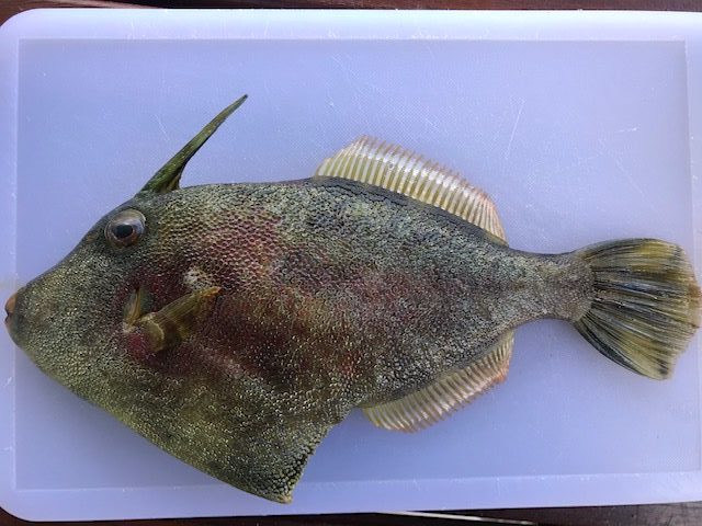 カワハギを釣ったことがありますが、全長はせいぜい25センチくらいで大きくない魚です。しかしその名前の通り、皮ジャンのように固い皮をまとう風変わりな容貌は、大変ユニークなものです。しかも、生きているうちは鮮やかで深みある青色を放っていたのに、死ぬとどんよりした茶色に変色してしまう不思議な種類があることにも惹かれます。