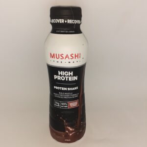 今回取り上げるハイ・プロテイン・シェイクは独立系スーパーIGAで買ったもの。製造元のMUSASHI(ムサシ)はプロテイン・パウダーから亜鉛タブレットまで、「筋肉」をテーマにしたような栄養補助剤・飲料を製造・販売しています。同社のサイトには販売ページのほかに、研究開発(R&D)ページもあります。商品の開発かと思いきや、「トレーニング後は炭水化物も必要か」とか、「練習中の休息時間はどのくらいにすべきか」といった記事がてんこ盛り。どうやら同社が研究開発する対象は、「パワー」とか「パフォーマンス」のようです。