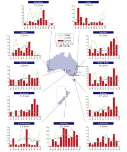 豪主要農畜産地域の降水量2025年10月24日豪主要農畜産地域の降水量 10月16日~22日