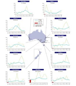 豪主要農畜産地域の降水量2025年10月9日豪主要農畜産地域の降水量 10月2日~8日
