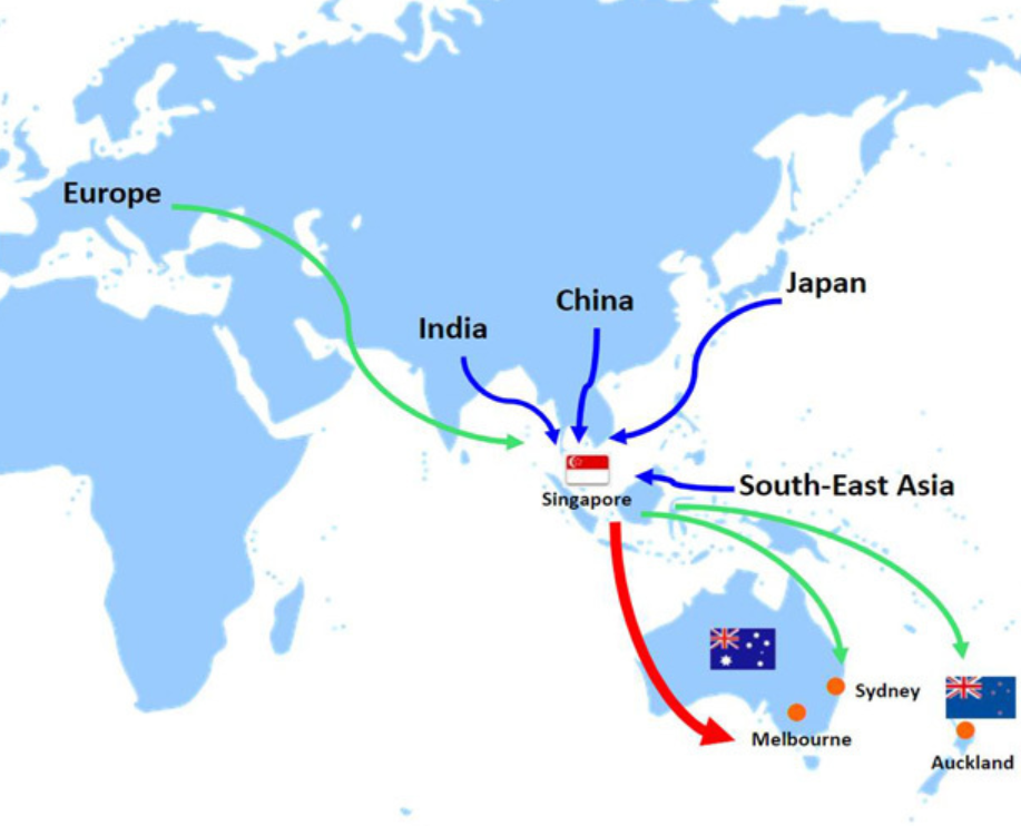 アジアの15カ国・地域、約30拠点からの貨物について、経由地であるシンガポールとメルボルンにて自社の専任スタッフがオペレーションを行うことが可能となった。これにより紛失やダメージなどのリスク低減が期待されるほか、メルボルン港に到着してから最速で翌々日には当社倉庫にて貨物をリリースでき、現行と比較してリードタイムが約4−6日短縮される。