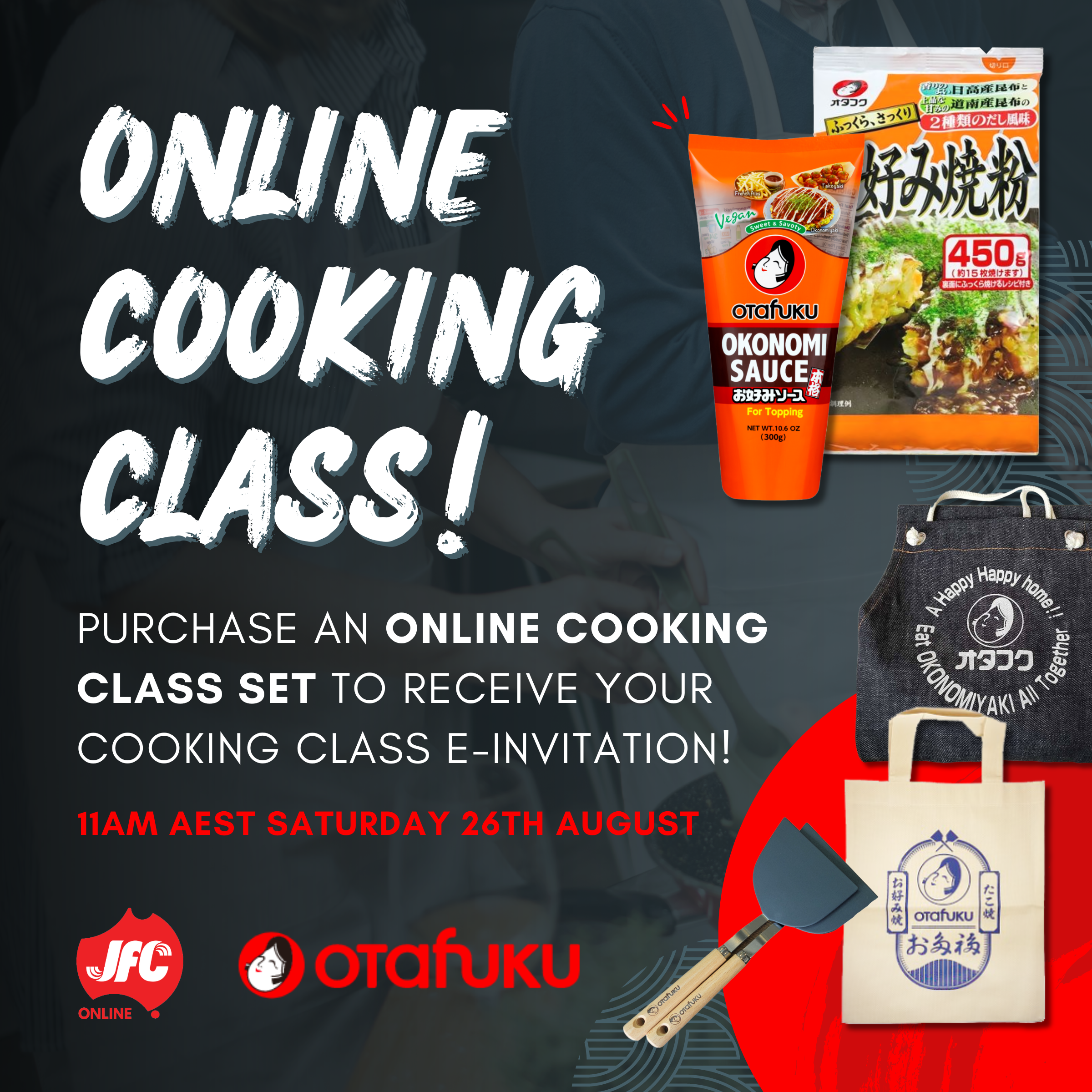 日本食卸業大手のJFCオーストラリアは、お好み焼きで有名なオタフクソース株式会社の協賛で、オンラインのお好み焼き教室を8月26日に開催する。同社のオンラインショッピングサイト「JFCオンライン・シドニー」で対象セット商品を購入すると参加可能だ。