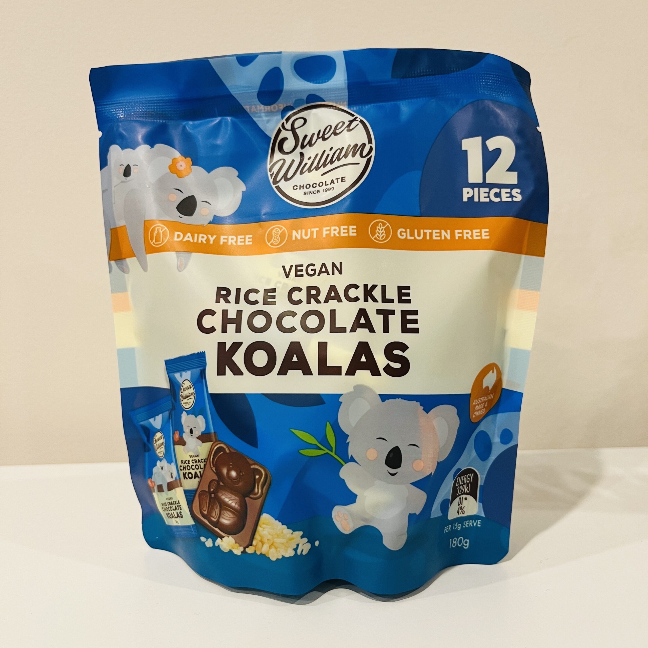 オーストラリアのお土産の定番といえば、キャドバリー(Cadbury)のチョコレート。中でもコアラの形をしたキャラメル味のカラメロコアラは、オーストラリアらしさ全開なだけでなく、一つずつ小分けになっているのでバラマキ土産にも最適です。と、ここまで語っておきながら、毎度帰国するたびに買うので本音はマンネリ気味。新しい定番を探していると、まさにカラメロコアラのビーガン(完全菜食主義)版ともいえるスイート・ウィリアムズのチョコレートを見つけました。