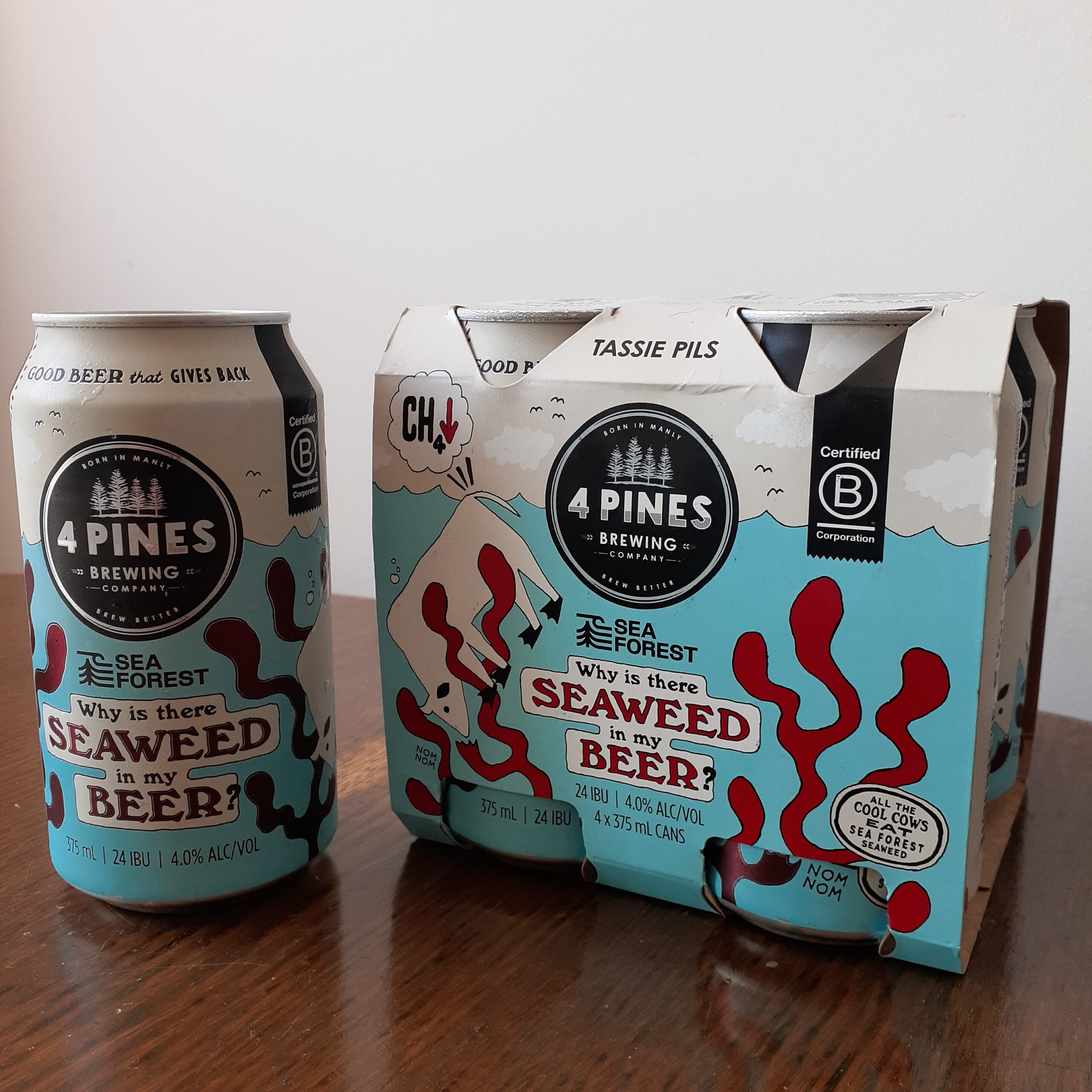実はこのビール、牛のゲップに含まれるメタンガスを削減するための海藻飼料添加物のメーカー、シー・フォレストとフォーパインズのコラボ製品です。人気が出て常時販売されることを期待します。(尋助)
