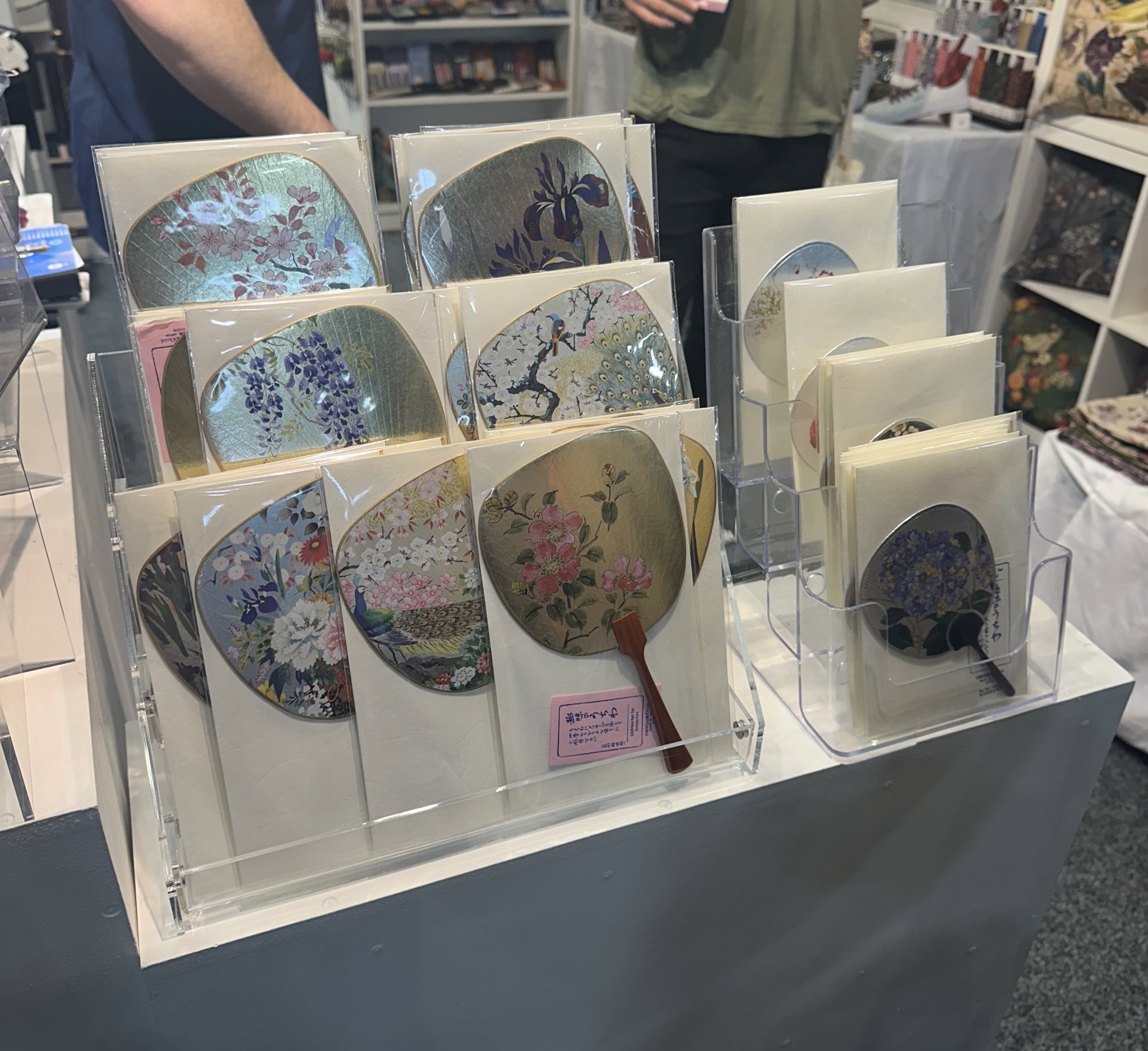 シドニーで開催されたギフトフェアでは、日本から輸入されたうちわ型メッセージカードも(20日、シドニーオリンピックパーク)