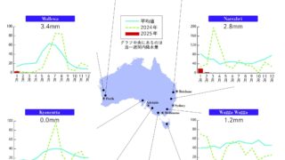 豪主要農畜産地域の降水量2026年2月6日豪主要農畜産地域の降水量 1月29日~2月4日