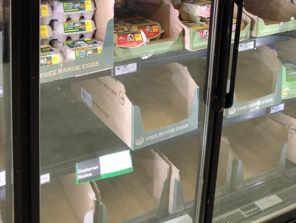 鳥インフルエンザの影響で、卵の供給が減少中(シドニー市内のスーパー)