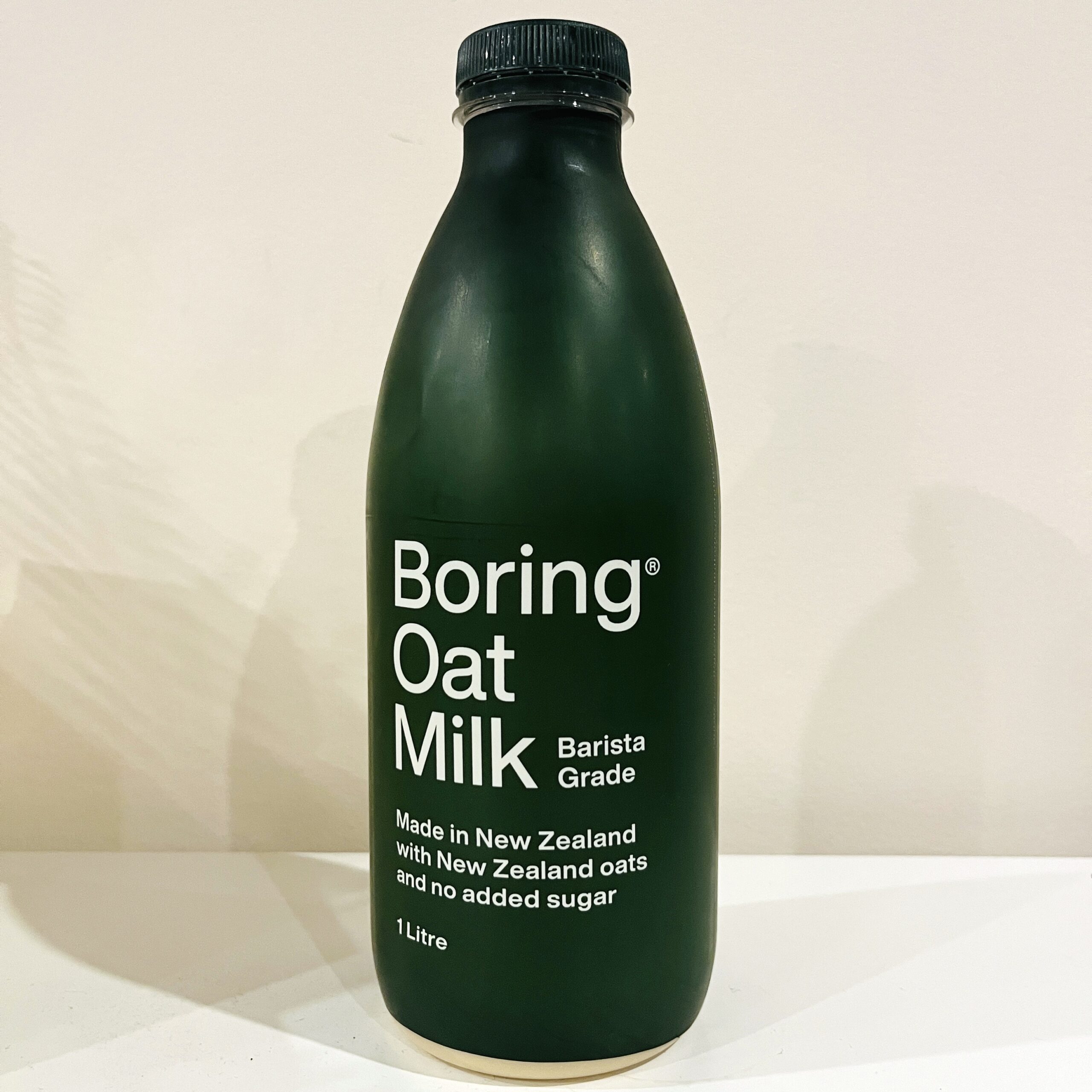「Boring(つまらない)」というネガティブな社名には、「つまらないほど一貫して素晴らしく、信頼でき、つまらないほど牛乳に似ている」という意味が込められています。オーツミルクといえばスウェーデンの「オートリ―(OATLY)」が代表的ですが、「スウェーデンなんて素敵な国ではなく、なんてことないNZで生産している」と自虐ネタも交えています。創業者のモーガン・モウさんはタラナキ出身で、オーツにもコーヒーにも精通していることから、コーヒーに合うオーツミルクの開発には最適な人材だったそうです。