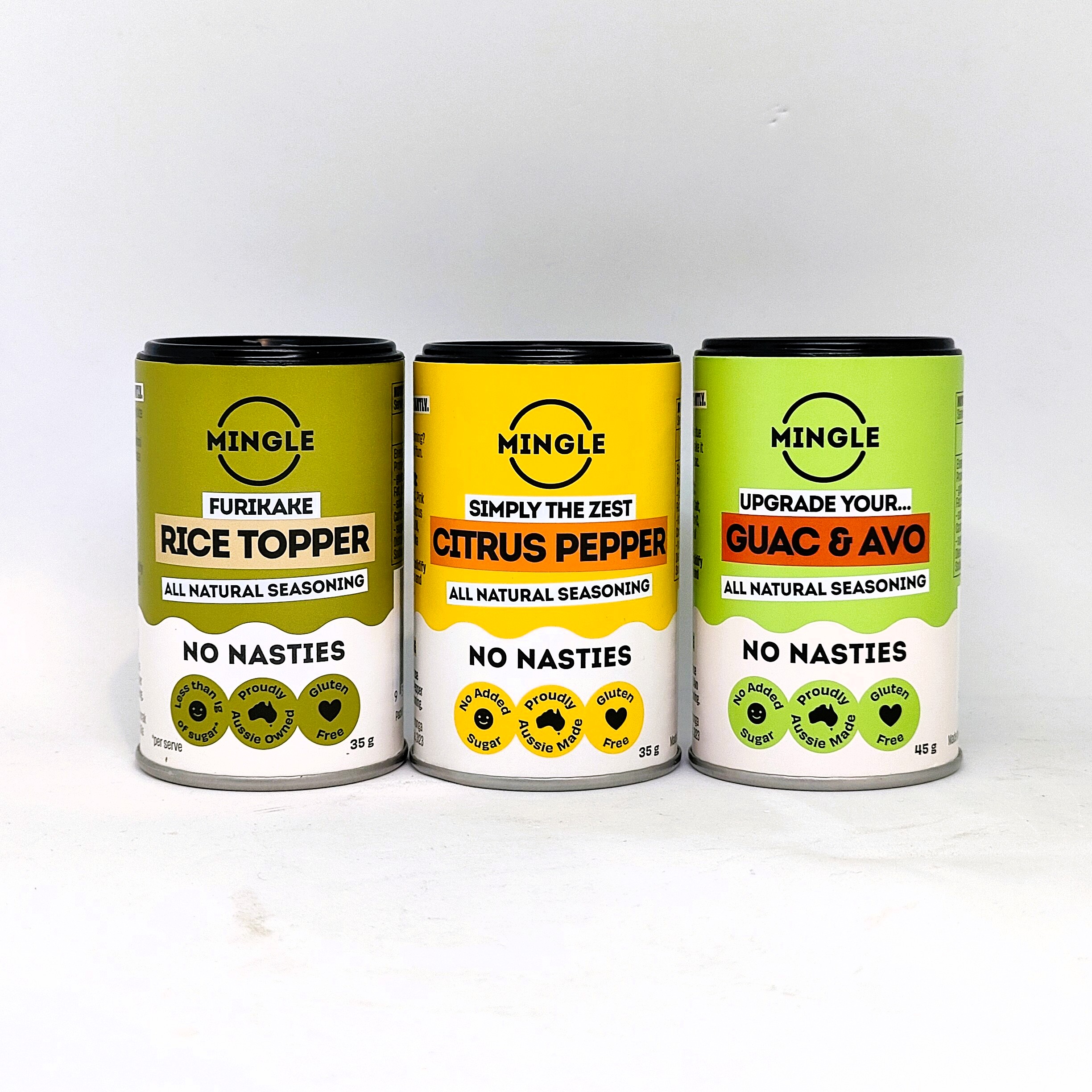 2016年に創業してから現在では大手スーパーなど2,000店舗以上で販売中です。ミングル・シーズニングの調味料は、砂糖・防腐剤無添加、ビーガン対応、グルテンフリー、高度に加工された油も含まないのが特徴で、1個当たり4.95豪ドル(1豪ドル=約93円、価格は調査当時)です。