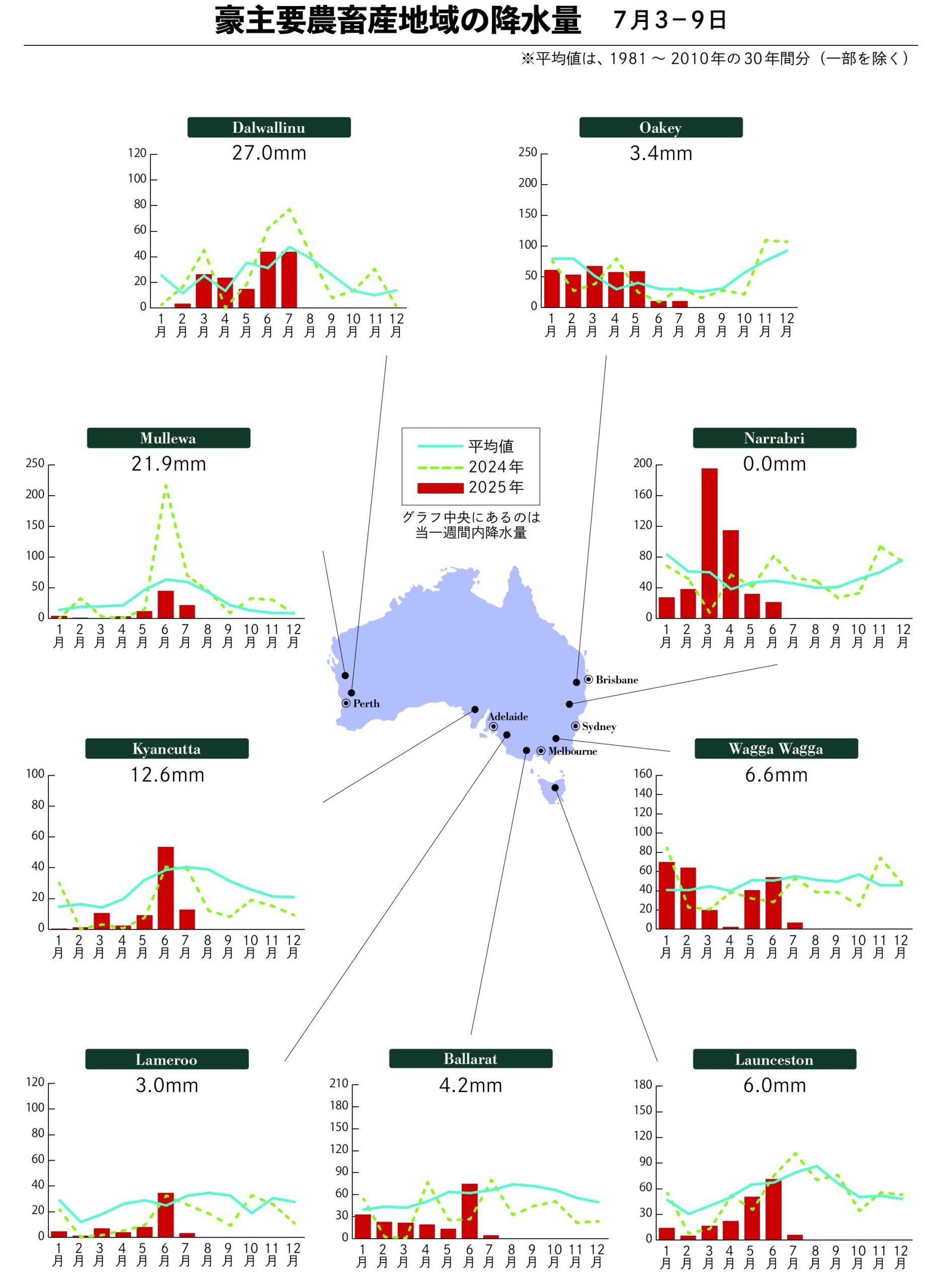 豪主要農畜産地域の降水量2025年10月17日豪主要農畜産地域の降水量 10月9日~15日