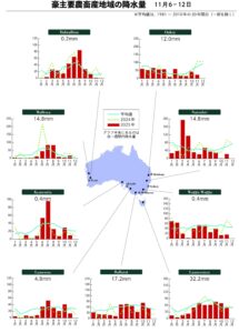 豪主要農畜産地域の降水量2025年11月14日豪主要農畜産地域の降水量 11月6日~12日