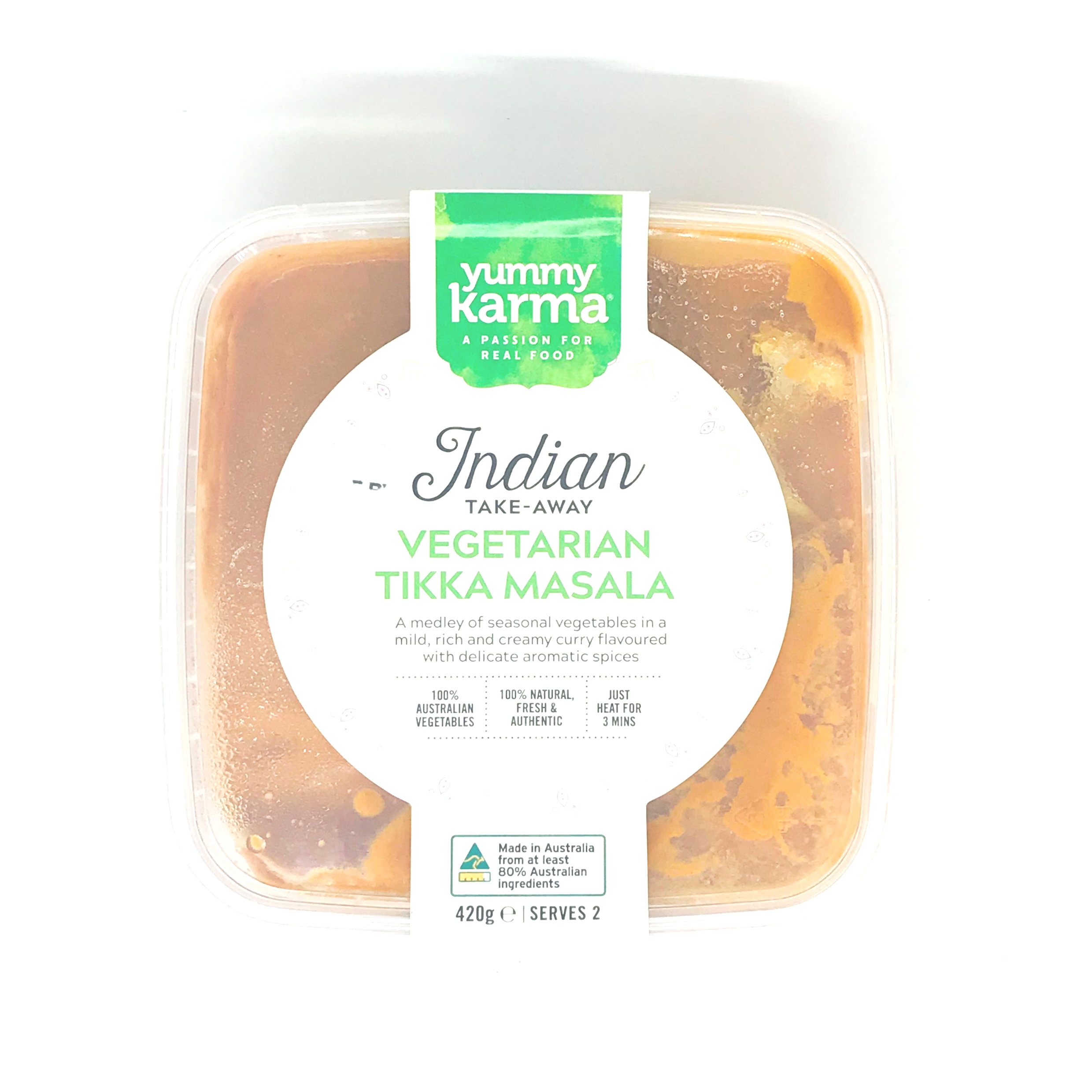 今回紹介するティッカマサラは、英国発祥のインド料理で、トマトとクリームをベースとしたカレー料理の一種。通常は鶏肉を使用するようですが、こちらはベジタリアンです。電子レンジに入れて3分待てば、野菜がごろごろ入った手作り感あふれるカレーが楽しめます。値段は1パック2食分で9.95豪ドル(1豪ドル=約75円、値段は調査当時)。何かとバタバタする平日のランチにぴったりです。(岩下)