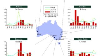 豪主要農畜産地域の降水量2025年12月19日豪主要農畜産地域の降水量 12月11日~18日