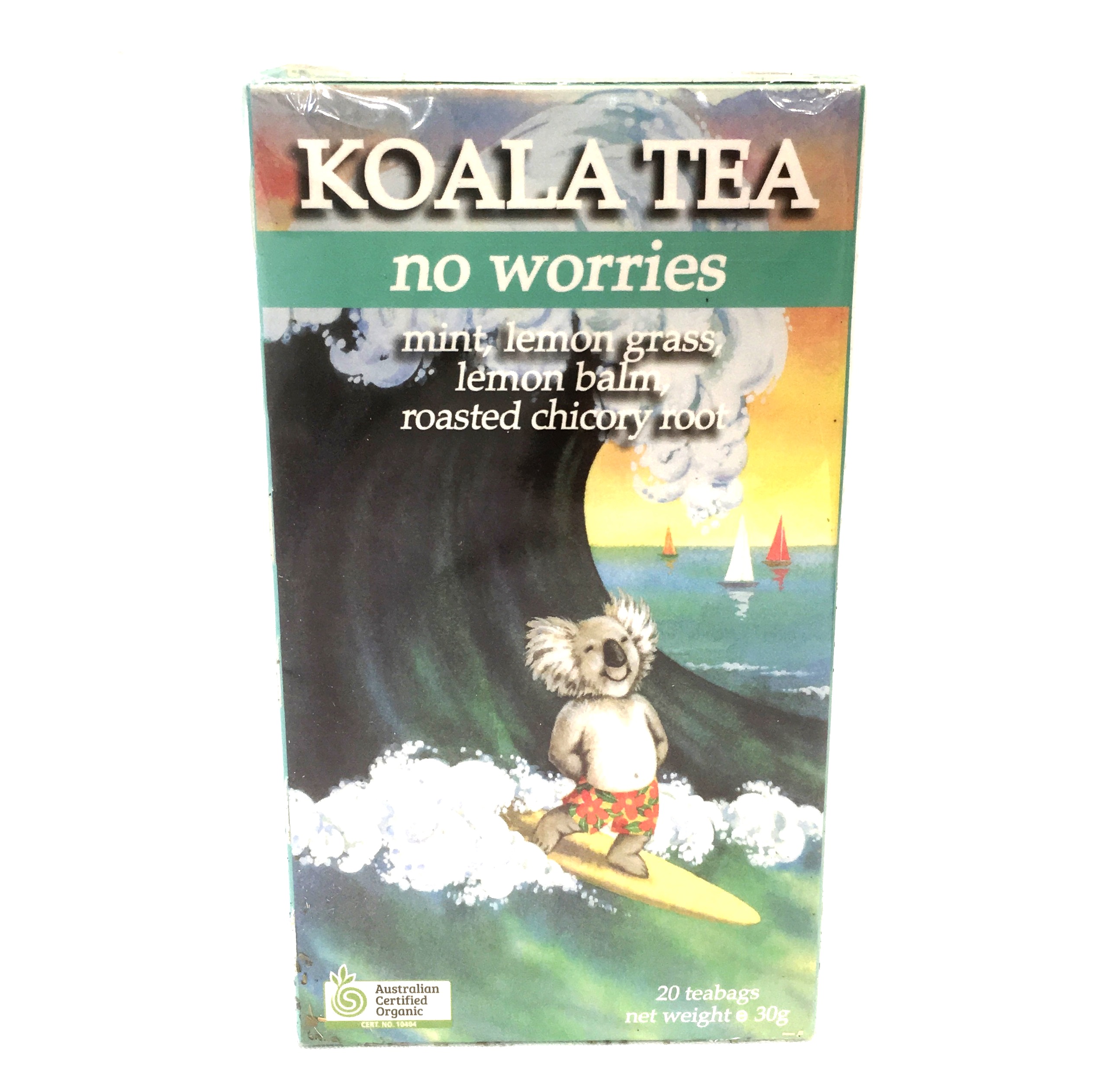 オージーがよく使う「No worries(大丈夫、どういたしまして)」というフレーズが名前になっているハーブティーは、コアラが笑顔でサーフィンするパッケージもユニークです。