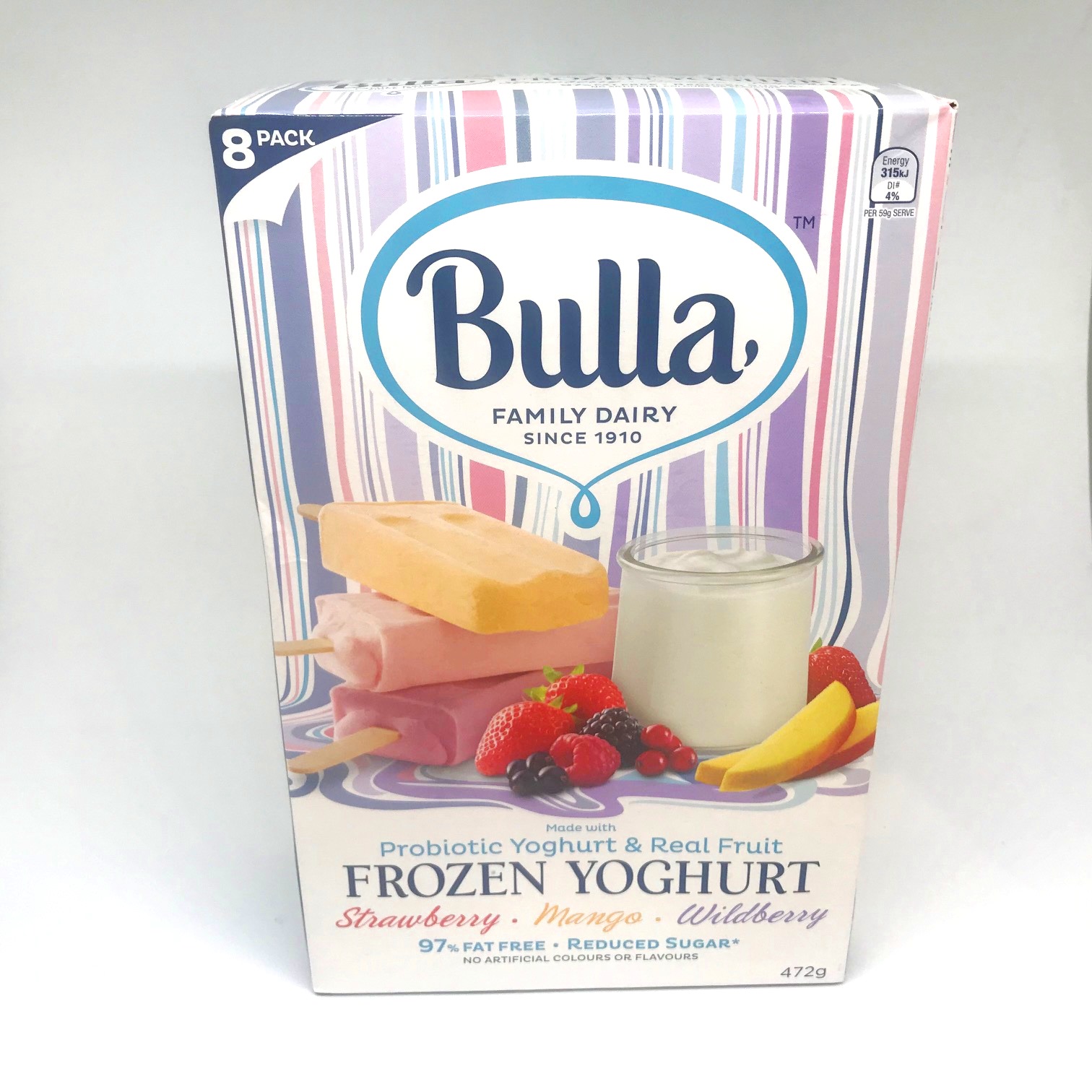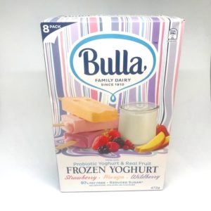 オーストラリア人もアイスクリームやヨーグルトが大好きな国民ですが、今回紹介するのは、大手のスーパーでは必ずといっていいほど売られている老舗ブランド「ブラ(Bulla)」のフローズン・ヨーグルトです。最近中国企業の傘下になりましたが、そのことはあまり知られておらず、自国ブランド好きの国民性も相まって、ブラの商品は人気なのでしょう。