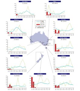 豪主要農畜産地域の降水量2025年10月24日豪主要農畜産地域の降水量 10月16日~22日