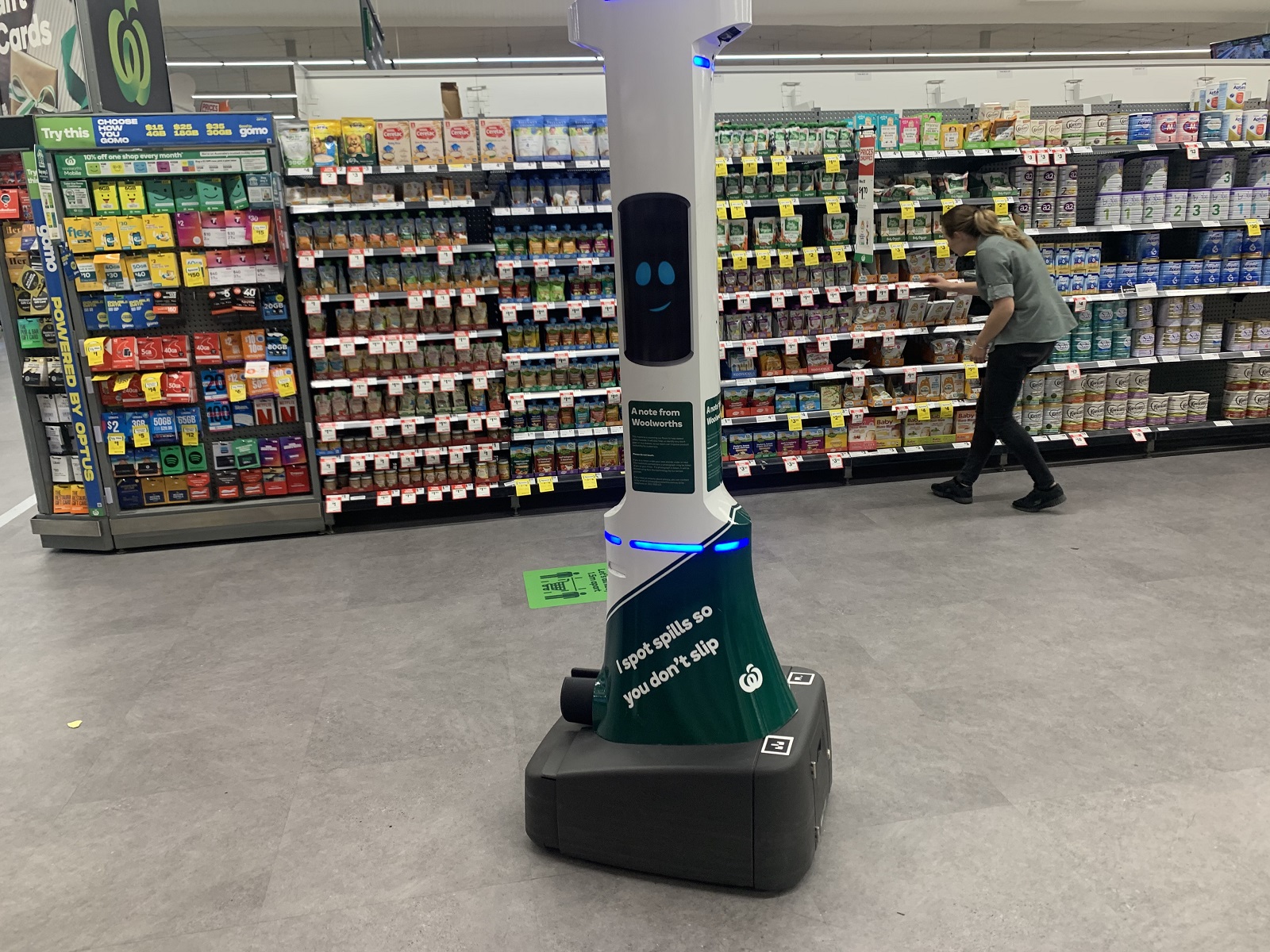 ウールワースの地元のスーパーで、巨大な縦長掃除機のような物体が店内をゆっくりと動き回っていた。ロボットだ。(上部写真参照)。