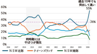 畜産2026年5月1日NSW州北部で畜牛供給が急増、乾燥悪化で