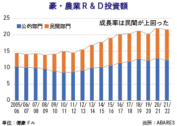 豪の農業R&D投資、年間4%成長 2023年4月20日 最終更新日時 : 2023年4月21日 ウェルス編集部 オーストラリアの農業界が研究開発(R&D)に投じた金額が過去10年間で、年間平均4.35%増加していることがオーストラリア農業資源経済・科学局(ABARES)の調査で判明した。2020/21年度のR&D向け投資額は22億豪ドル(1豪ドル=約88円)で、11/12年度からの14億豪ドルから増加した。ビーフセントラルが伝えた。 コンテンツの残りを閲覧するにはログインが必要です。 お願い Log In. あなたは会員ですか ? 会員についてFacebookXBluesky