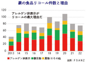 豪NZの食品表示、厳密化へ 新基準25日に施行で混乱も 2024年2月16日 最終更新日時 : 2024年2月16日 ウェルス編集部 オーストラリアとニュージーランド(NZ)の食品業界で、新たな表示ラベル規制の施行日が今月25日と目前に迫っている。消費者の健康被害を防止する観点から、食品アレルギーの原因となるアレルゲンの表示義務が厳密化される。食品リコール(自主回収)の最大の理由はアレルゲン非表示が占めている中で、企業の負担が増え食品メーカーや輸入商社らは戦々恐々としているようだ。【ウェルス編集部】 コンテンツの残りを閲覧するにはログインが必要です。 お願い Log In. あなたは会員ですか ? 会員についてFacebookXBluesky