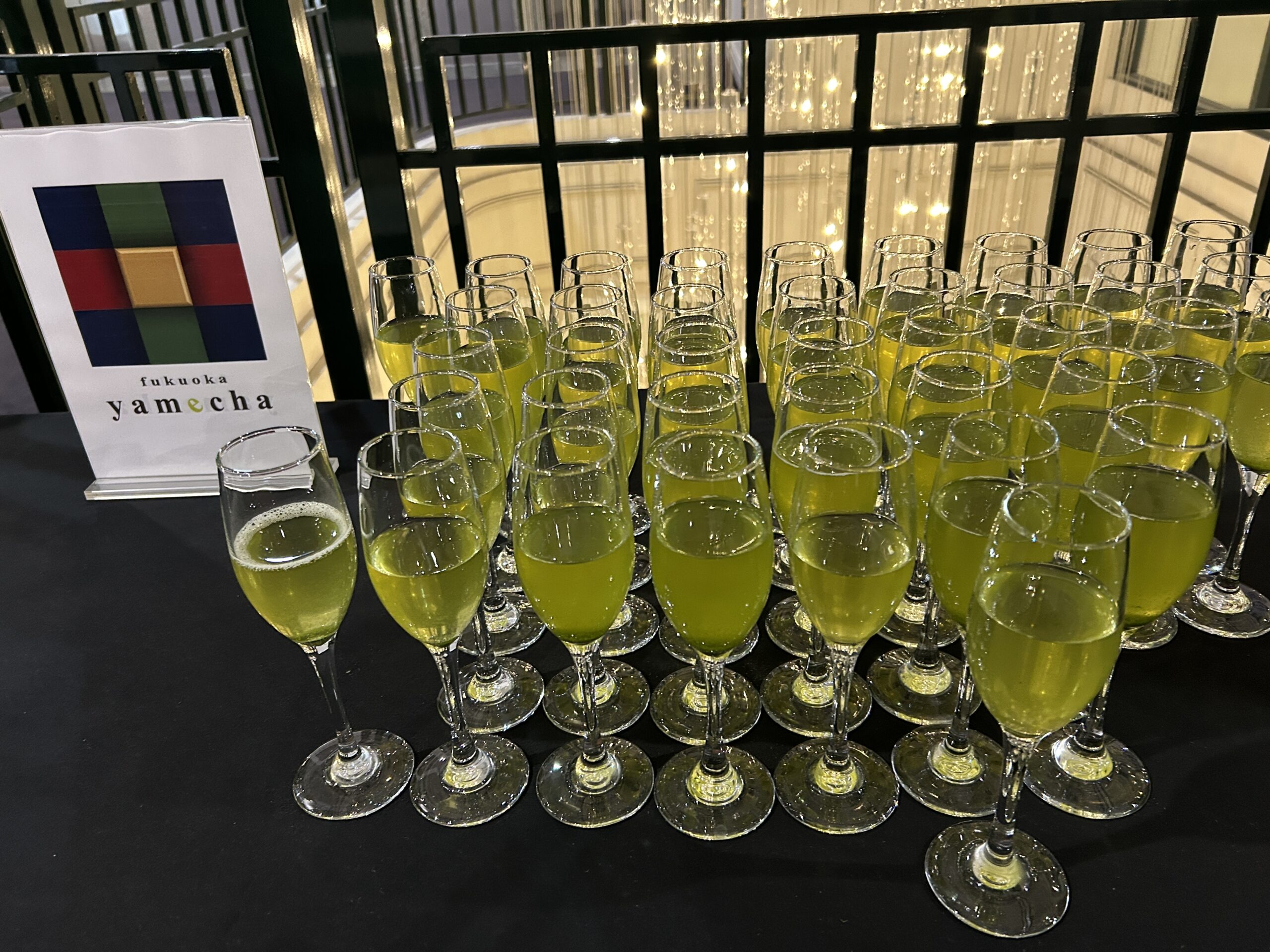 続いて行われた交流会では、昨年発祥から600年を迎えた県名産の「八女茶」や県産の日本酒のほか、焼き鳥や抹茶ケーキなどが振る舞われた。