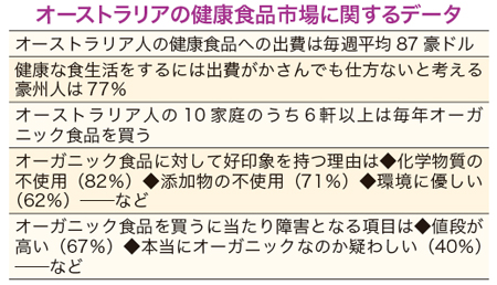 豪の健康食品市場が熱い 小売り売り上げ、5年で88%増 2018年7月27日 最終更新日時 : 2022年4月28日 ウェルス編集部 オーストラリアやニュージーランド(NZ)の健康食品・飲料の需要が近年、急拡大を続けているもようだ。 コンテンツの残りを閲覧するにはログインが必要です。 お願い Log In. あなたは会員ですか ? 会員についてFacebookXBluesky