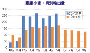世界の農産品市場でトウモロコシの価格が上昇していることから、オーストラリア産を含む飼料用小麦の需要が押し上げられているようだ。