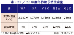 今シーズンの豪産穀物、現金価格は低迷見込み 2022年10月21日 最終更新日時 : 2022年10月21日 ウェルス編集部 オーストラリアの穀物業界で3年連続の豊作が見込まれる中、海外市場で穀物が不足している現状や世界的な景気後退(リセッション)への懸念、また歴史的な豪ドル安などの複合的な要因により、今シーズンのオーストラリア産穀物について現金価格が低迷するとの見方が出ている。ストックジャーナルが伝えた。 コンテンツの残りを閲覧するにはログインが必要です。 お願い Log In. あなたは会員ですか ? 会員についてFacebookXBluesky