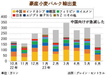 豪小麦6月輸出が2割減、累計は最大に 2023年8月10日 最終更新日時 : 2023年8月10日 ウェルス編集部 オーストラリアの6月の小麦輸出量が257万1,013トンで、330万8,101トンだった前月から22%減少したことが豪政府統計局(ABS)の調べで分かった。10月からの今シーズンの累計輸出量は2,545万トンで、前年同期から22%増加し、新記録を達成するとみられている。グレインセントラルが伝えた。 コンテンツの残りを閲覧するにはログインが必要です。 お願い Log In. あなたは会員ですか ? 会員についてFacebookXBluesky