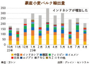 アジア需要で豪産小麦が堅調 世界の政情不安が反映 2023年10月12日 最終更新日時 : 2023年10月12日 ウェルス編集部 オーストラリアを含む小麦の主要生産国が厳しい気候条件に直面していることや、中東およびロシアとウクライナの紛争で、今後価格が上昇するとの見方がアジアで広がっている。製粉会社は小麦の輸入を増やしているようだ。直近では米国の生産増加観測で輸出市場の価格が急落する一方、オーストラリア産への需要は強く、価格も堅調とみられている。これを受けて、世界第2位の小麦輸入国インドネシアに対するオーストラリアの8月までの3カ月の輸出量が78%増加した。【ウェルス編集部】 コンテンツの残りを閲覧するにはログインが必要です。 お願い Log In. あなたは会員ですか ? 会員についてFacebookXBluesky