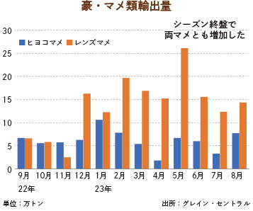 豪産マメ類輸出、シーズン終盤に増加