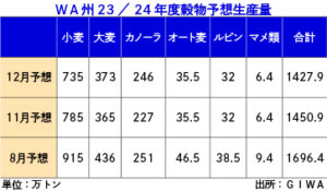 オーストラリアで穀物のマーケティング年度の始めとなる10月(2023年)の小麦輸出量が合計141万6,084トンで、149万3,772トンだった前月から5%減少したことが豪政府統計局(ABS)の調べで分かった。前年同月は合計で200万トンの小麦を輸出していた。
