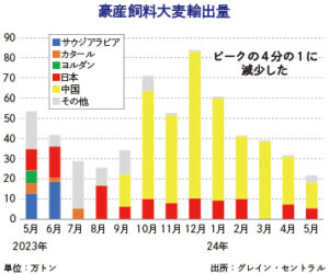 豪小麦価格が20%下落、世界情勢不安で 2024年7月19日 最終更新日時 : 2024年7月19日 ウェルス編集部 オーストラリア証券取引所(ASX)の新シーズンの小麦先物は1トン当たり350豪ドル(1豪ドル=約107円)と直近のピークから20%下落している。前シーズンの作物の現金取引も同320豪ドルで低迷中だ。5月の高値水準から、ロシアの生産状況が予想を上回ったことで、弱気基調に転じたという。農業誌ランドが伝えた。 コンテンツの残りを閲覧するにはログインが必要です。 お願い Log In. あなたは会員ですか ? 会員についてFacebookXBluesky