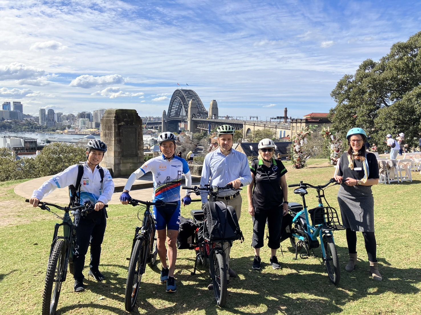 中村知事は同日の視察について「シドニーは自転車専用道路の整備や美しい景観など、サイクリストにとって走りやすい環境が整っていると感じた。今後の交流を通じて、NSW州からは特に安全性に関する取り組みを学びたい」と述べた。