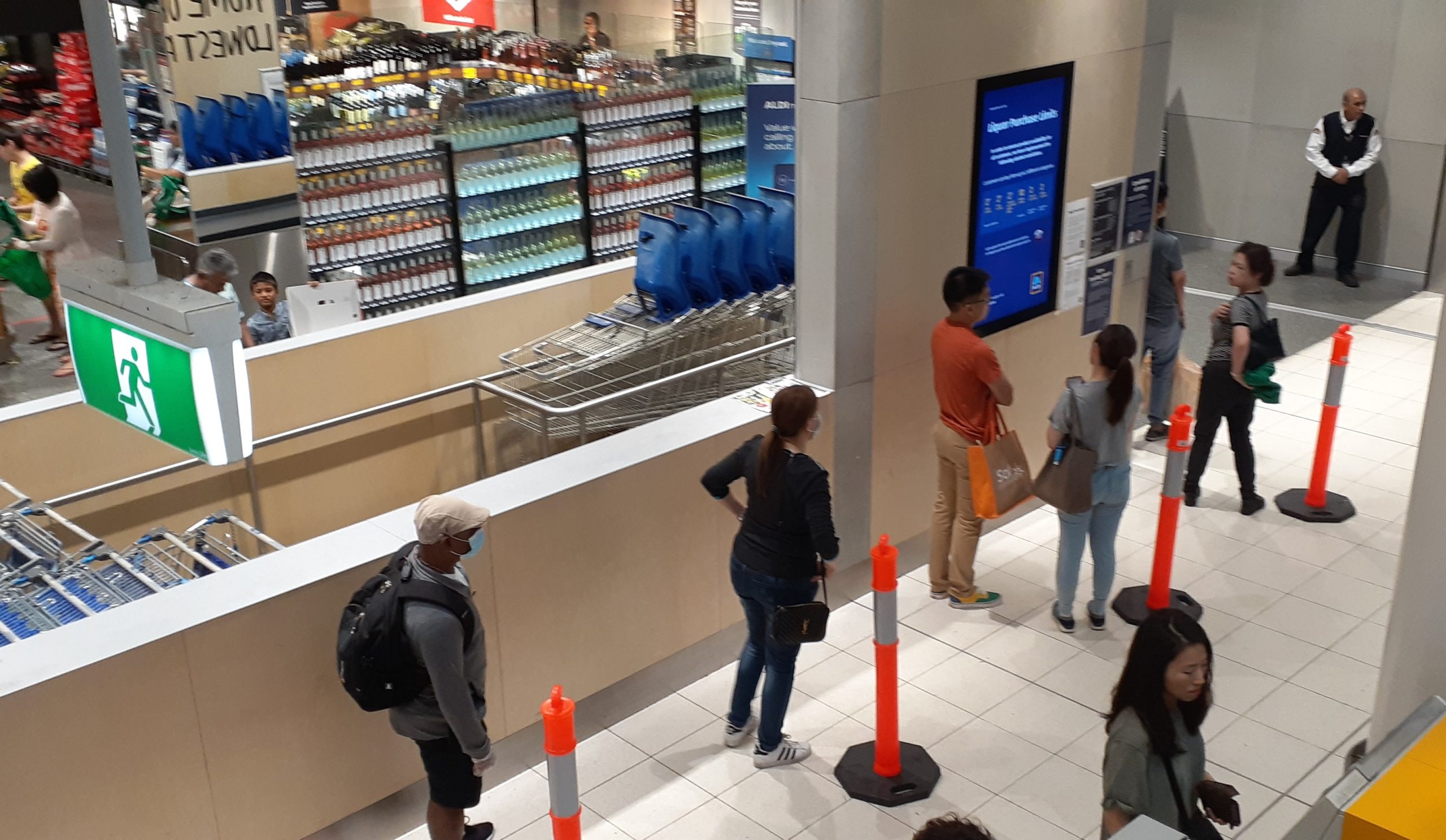 スーパーの店頭で入店の順番を待つ人々(シドニー)