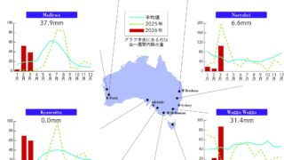 豪主要農畜産地域の降水量2026年4月2日豪主要農畜産地域の降水量 3月26日~31日