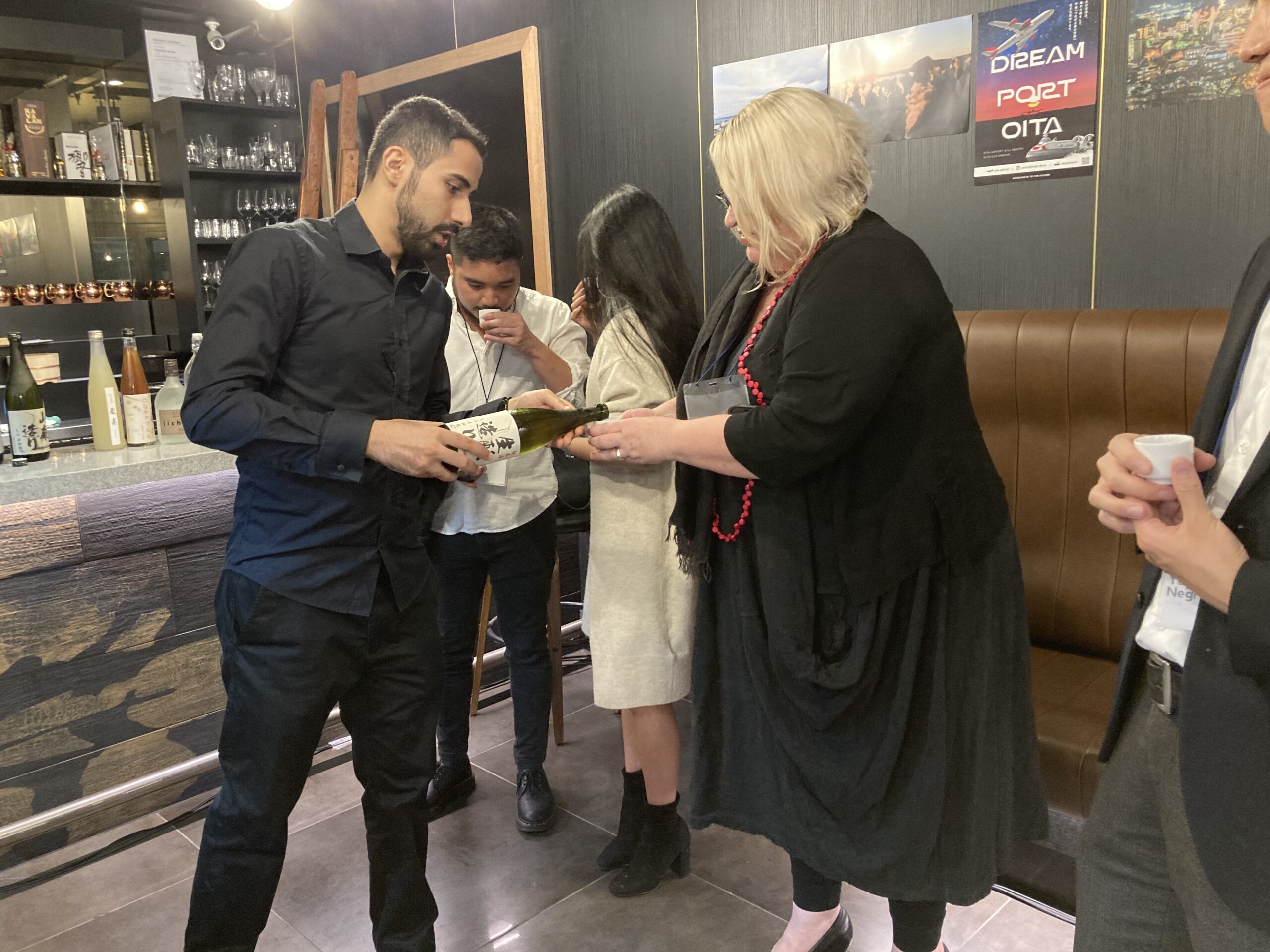 大分県の食品と酒フェアで日本酒の試飲 をする参加者=8日、シドニー