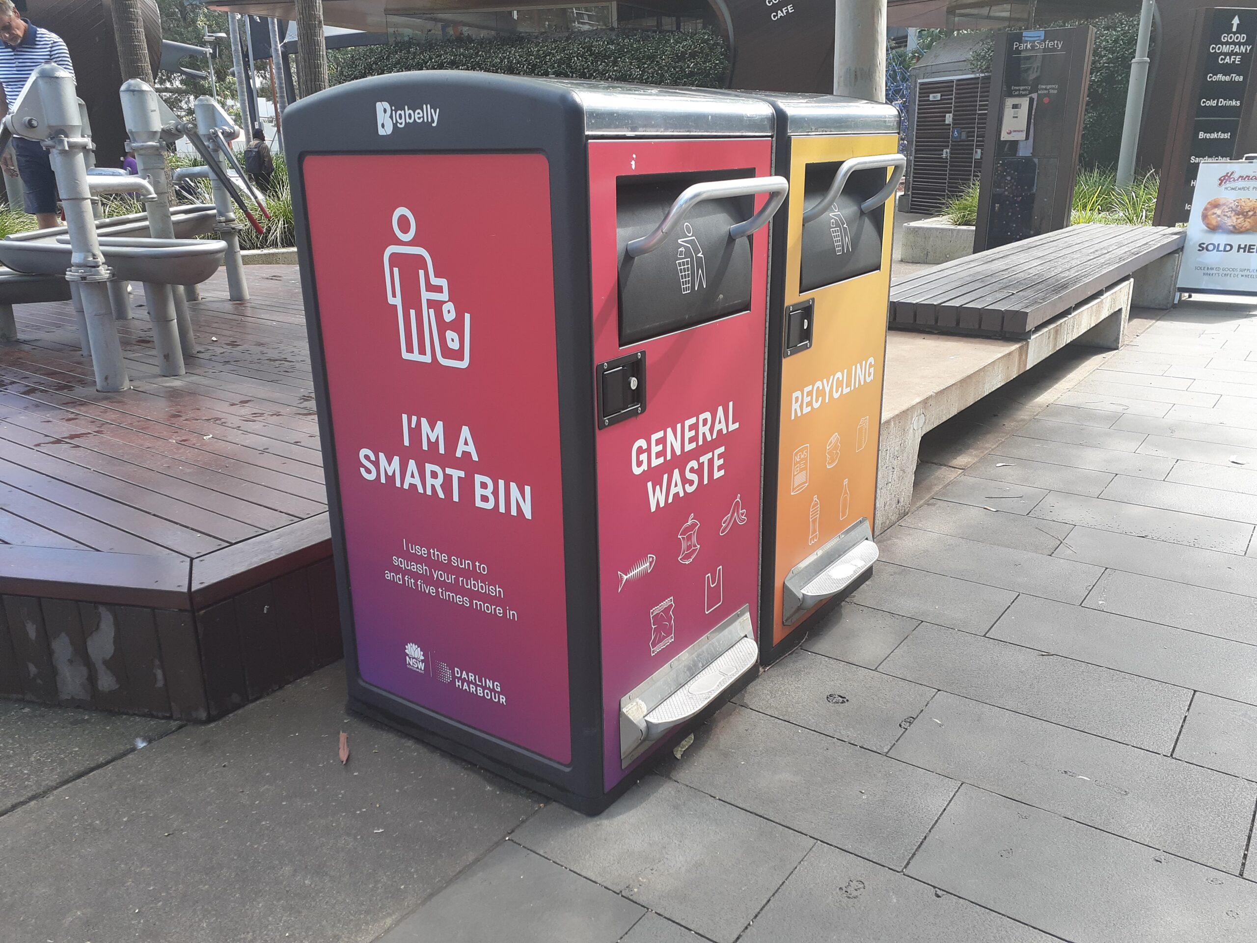 太陽光による動力でゴミを圧縮し、容量を増やす「スマートゴミ箱」(シドニー市内)
