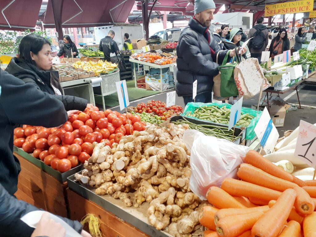 メルボルンのクイーンズビクトリア・マーケットは、冬でもたくさんの野菜が並ぶ